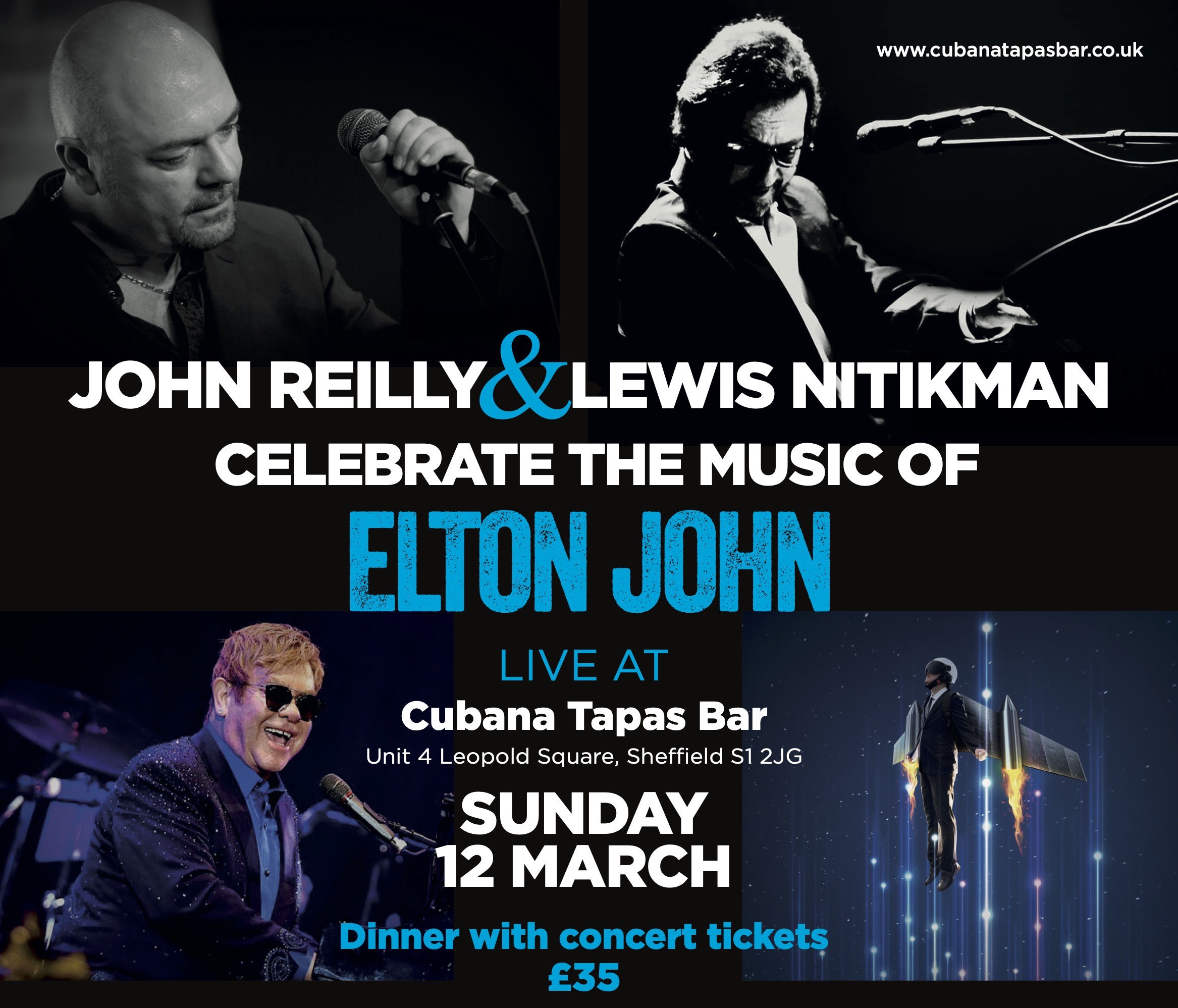 Singer songwriter John Reilly and Canadian pianist and co-writer Lewis Nitikman are returning to Cubana, this time to celebrate the music of Sir Elton John, Bernie Taupin and also Billy Joel. This will be a truly unique evening of stunning vocals and outstanding piano, expect to hear all your favourites in a true celebration of these wonderful, timeless tunes!!